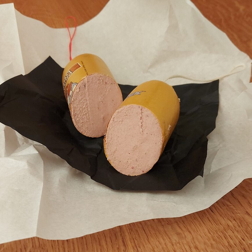 Die geschlossenen Wurstabbindungen werden zusätzlich in Folie vakuum gezogen und etikettiert.